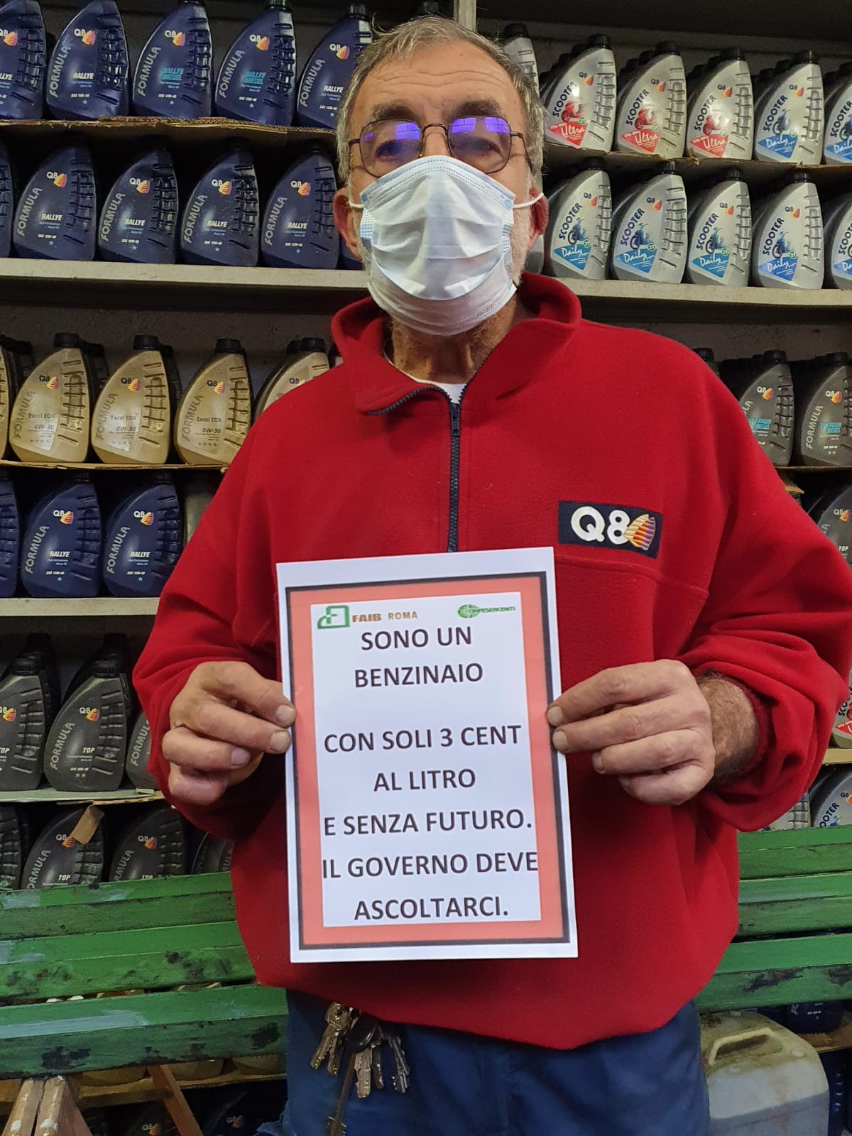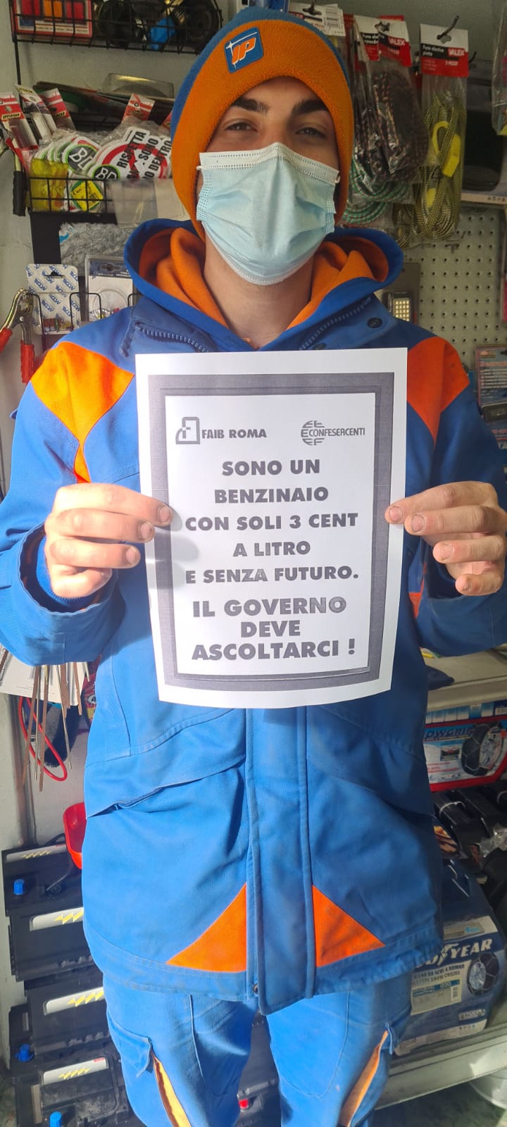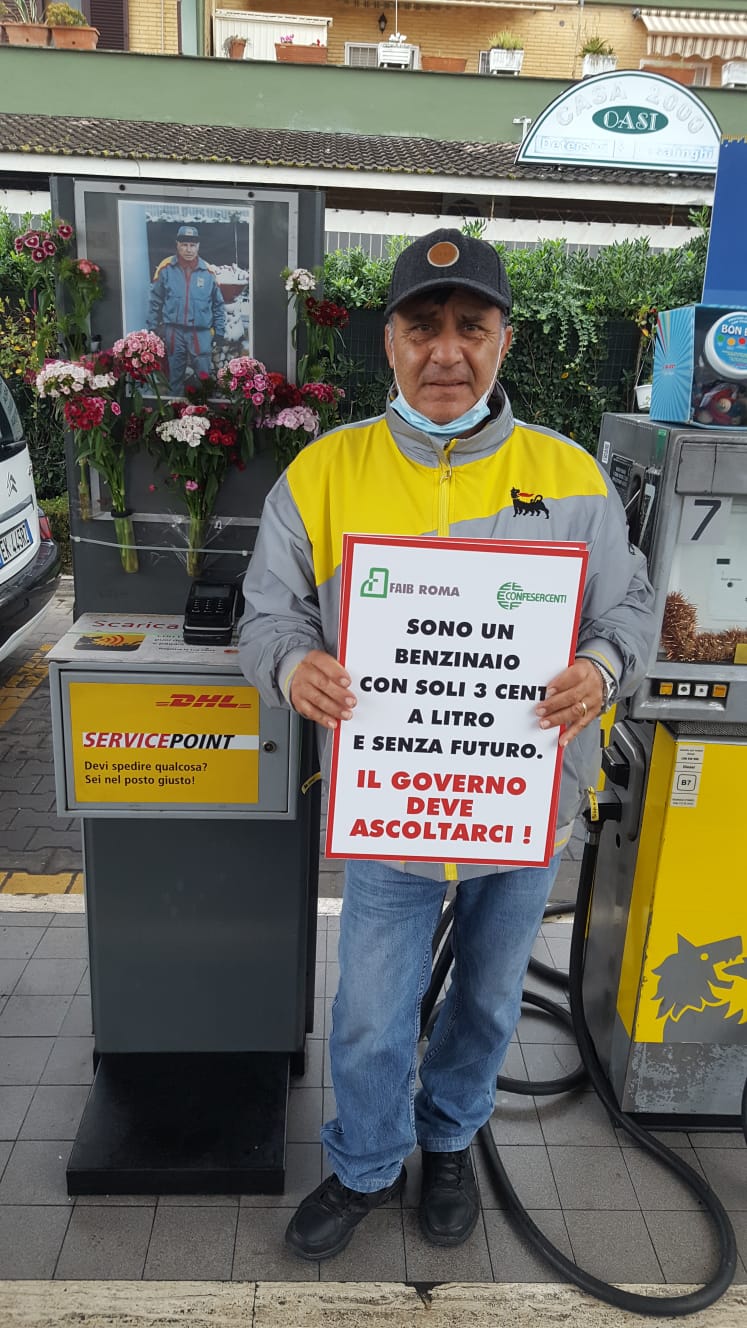 La Federazione dei benzinai lancia la prima Campagna Social della categoria. Promossa dalla FAIB Confesercenti di Roma e del Lazio. Chiedono al Governo (Ministero dello Sviluppo Economico e Ministero Economia e Finanze) di aprire, finalmente, un Tavolo strutturale di riforma e ristoro del settore, già in forte crisi e ulteriormente "piegato" dalla pandemia. Una manifestazione a distanza della categoria alla quale arrivano le prime adesioni. La FAIB Confesercenti invita tutti i benzinai a fare altrettanto per testimoniare il forte disagio che sta attraversando la categoria e ottenere l'istituzione di una sede di confronto costruttiva. I "benzinai" che volessero aderire alla protesta digitale possono inviare una loro foto con il cartello esposto ai seguenti indirizzi mail: a.ciavattini@confesercentiroma.it o antonio.ciavattini@gmail.com autorizzando esplicitamente un questo modo la pubblicazione della propria immagine sui social.