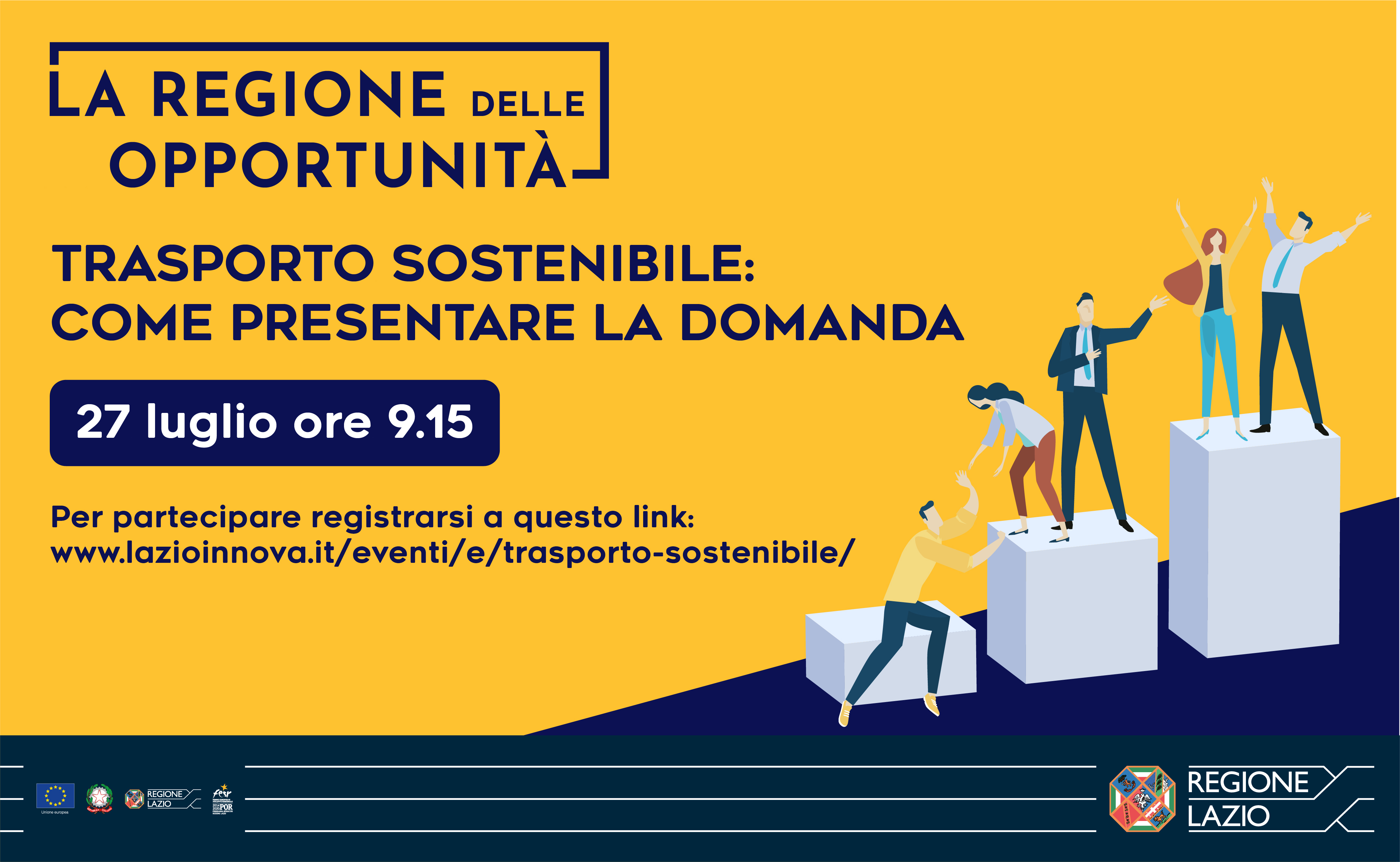Martedì 27 luglio alle 9:15 il webinar “Trasporto Sostenibile: come presentare la domanda”, organizzato grazie a Lazio Innova. Sarà l’occasione per spiegare a tutti i soggetti interessati il contenuto dell’Avviso e le corrette modalità di presentazione telematica delle domande. Gli esperti di Lazio Innova saranno a disposizione per rispondere alle richieste di chiarimenti.