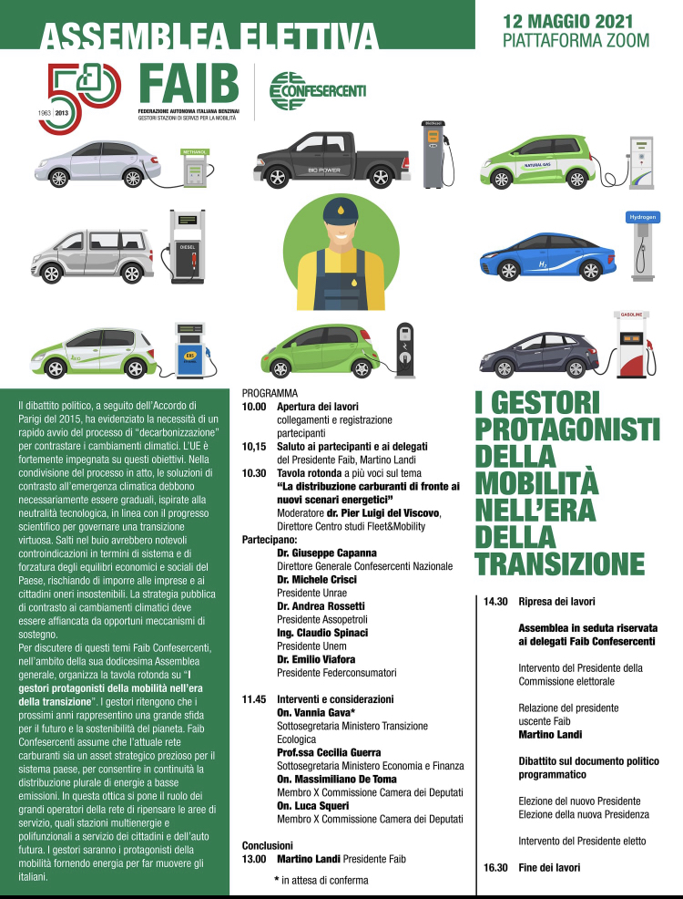 I gestori delle stazioni di servizio carburanti protagonisti della transizione energetica. 12 maggio l’Assemblea FAIB Categoria: Notizie Pubblicato: Lunedì, 03 Maggio 2021 06:41