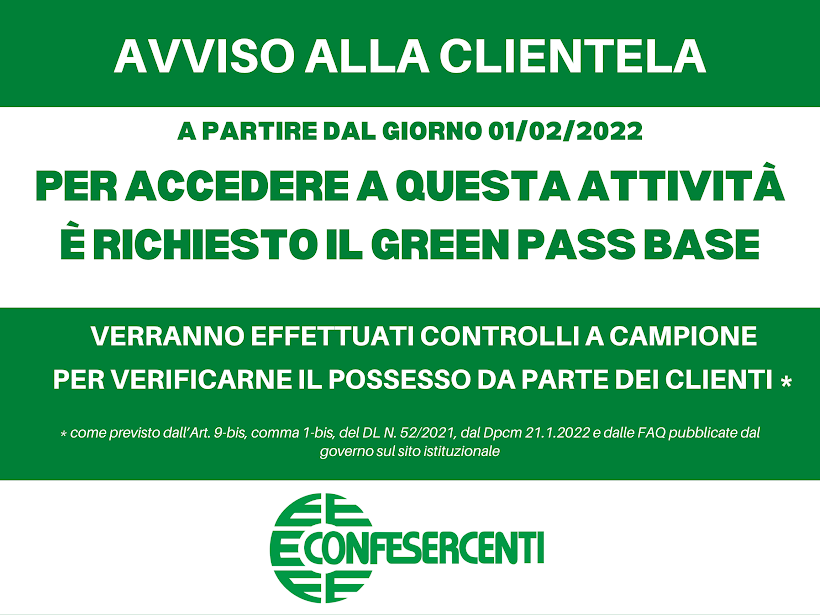 Ovviamente, anche il cliente che acceda agli esercizi senza dimostrare il possesso del green pass base è soggetto alla sanzione amministrativa del pagamento di una somma da euro 400 a euro 1.000.