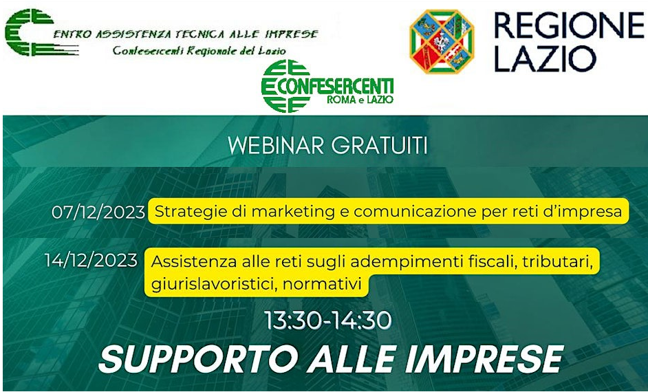 il 7 dicembre dalle ore 13.30 alle ore 14.30 Webinar su Strategie di marketing e comunicazione per reti d’impresa
